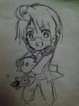 ついでにメリカも強請ったら描いてくれた。パンダ持ってるのはお嫁さんが隣で「中国さん描いて。それじゃなかったら中国さんの足元にいるパンダ描いて」って言ったからです。